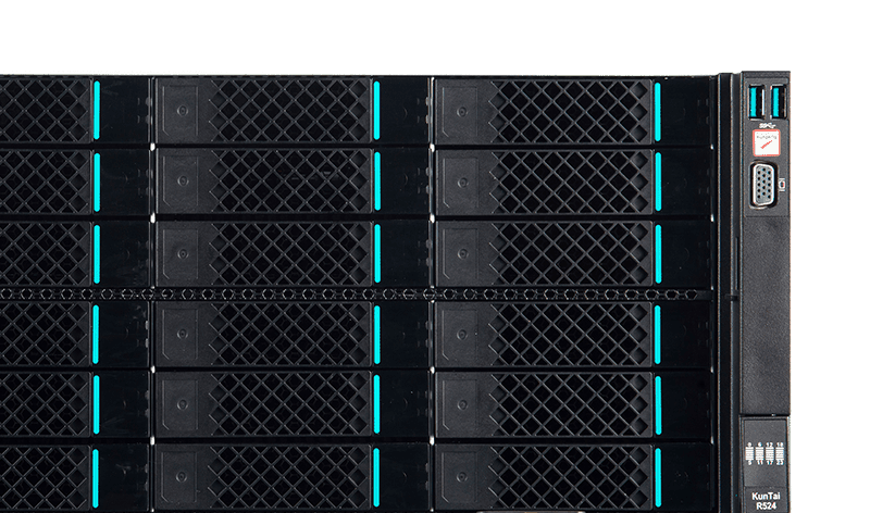 KunTai R524 存储型服务器是UU国际数码基于鲲鹏处理器推出的新一代 ARM数据中心服务器。。。。主要面向存储业务,,,具有海量存储、、、、高性能、、、低功耗以及易扩展的特点,,适合为大数据分析、、、、软件定义存 储等应用场景的工作负载进行髙效加速。。